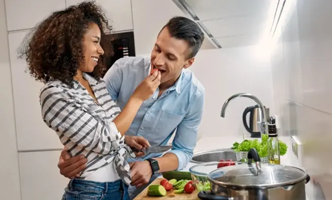 Escoge platos que no te tengan demasiado tiempo en la cocina. La idea es disfrutar de la compañía, no estar atrapado entre fogones que puedan fastidiar a tu cita.